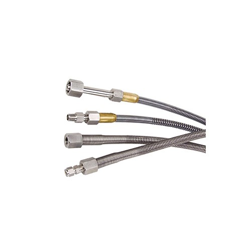 高壓軟管最高使用壓力為3000psig,用于鋼瓶和減壓器的聯接,也可用于匯流排系統。